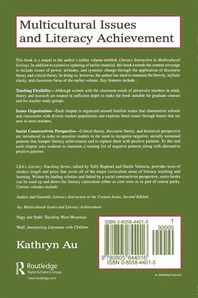 This book is a sequel to the author's earlier volume entitled, Literacy Instruction in Multicultural Settings. In addition to extensive updating of earlier material, this book extends the content coverage to include issues of power, attitudes, and systemic change through the application of discourse theory and critical theory. In doing so, however, the author has tried to maintain the brevity, stylistic clarity, and classroom focus of the earlier volume. Key features of this important new book include: *Teaching Flexibility. Although written with the classroom needs of pre-service teachers in mind, theory and research are treated in sufficient depth to make the book suitable for graduate courses and for teacher study groups. *Issues Organization. Each chapter is organized around familiar issues that characterize schools and classrooms with diverse student populations and explores these issues through new lenses that most teachers have not previously encountered. *Social Constructivist Perspective. Critical theory, discourse theory, and historical perspective are introduced in order to sensitize readers to the need to recognize negative, socially sustained patterns that hamper literacy achievement and replace them with positive patterns. To this end each chapter asks students to maintain a running list of negative patterns along with alternative positive patterns.