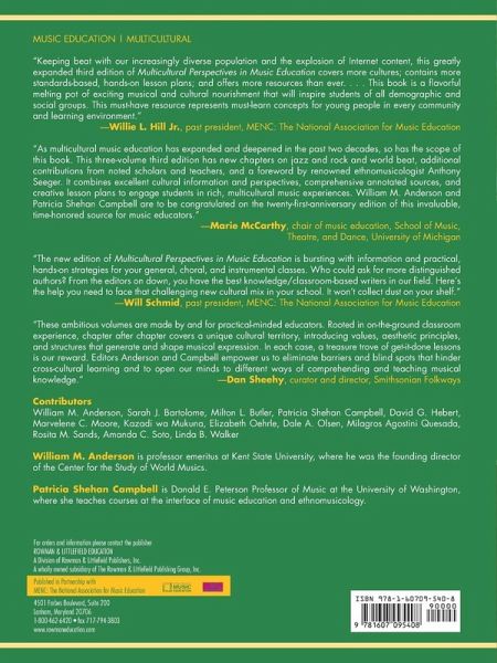1 Preface 2 Foreword 3 INTRODUCTION TO TEACHING MUSIC FROM A MULTICULTURAL PERSPECTIVE 4 MUSIC OF SUB-SAHARAN AFRICA 5 AFRICAN AMERICAN MUSIC 6 MUSIC OF LATIN AMERICA AND THE CARIBBEAN 7 JAZZ AND ROCK 8 GLOSSARY 9 INDEX 10 CONTRIBUTORS