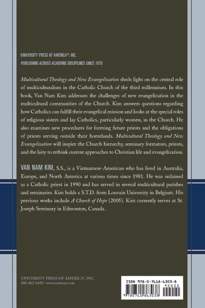 In Multicultural Theology and New Evangelization, Kim addresses the challenges of new evangelization in the multicultural communities of the Church. This book will inspire the Church hierarchy, seminary formators, priests, and the laity to rethink current approaches to Christian life and evangelization.
