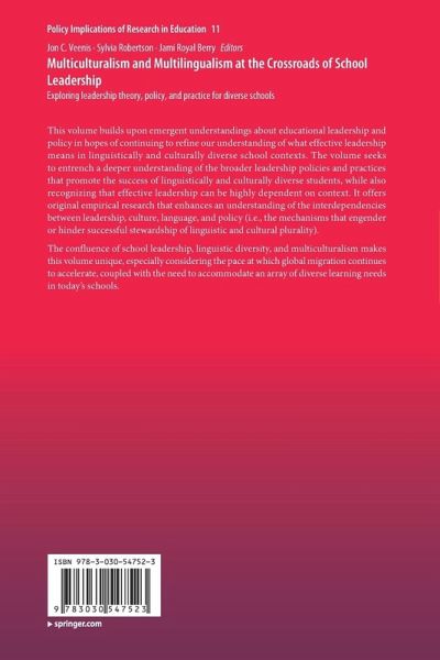 This volume builds upon emergent understandings about educational leadership and policy in hopes of continuing to refine our understanding of what effective leadership means in linguistically and culturally diverse school contexts. The volume seeks to entrench a deeper understanding of the broader leadership policies and practices that promote the success of linguistically and culturally diverse students, while also recognizing that effective leadership can be highly dependent on context. It offers original empirical research that enhances an understanding of the interdependencies between leadership, culture, language, and policy (i.e., the mechanisms that engender or hinder successful stewardship of linguistic and cultural plurality). The confluence of school leadership, linguistic diversity, and multiculturalism makes this volume unique, especially considering the pace at which global migration continues to accelerate, coupled with the need to accommodate an array of diverselearning needs in today's schools.