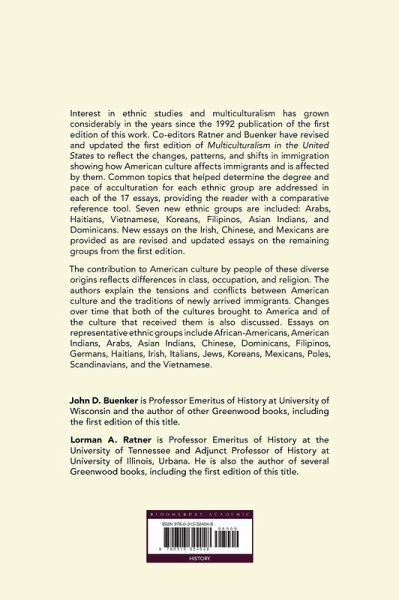 Interest in ethnic studies and multiculturalism has grown considerably in the years since the 1992 publication of the first edition of this work. Co-editors Ratner and Buenker have revised and updated the first edition of Multiculturalism in the United States to reflect the changes, patterns, and shifts in immigration showing how American culture affects immigrants and is affected by them. Common topics that helped determine the degree and pace of acculturation for each ethnic group are addressed in each of the 17 essays, providing the reader with a comparative reference tool. Seven new ethnic groups are included: Arabs, Haitians, Vietnamese, Koreans, Filipinos, Asian Indians, and Dominicans. New essays on the Irish, Chinese, and Mexicans are provided as are revised and updated essays on the remaining groups from the first edition. The contribution to American culture by people of these diverse origins reflects differences in class, occupation, and religion. The authors explain the tensions and conflicts between American culture and the traditions of newly arrived immigrants. Changes over time that both of the cultures brought to America and of the culture that received them is also discussed. Essays on representative ethnic groups include African-Americans, American Indians, Arabs, Asian Indians, Chinese, Dominicans, Filipinos, Germans, Haitians, Irish, Italians, Jews, Koreans, Mexicans, Poles, Scandinavians, and the Vietnamese.