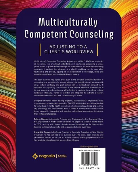 Multiculturally Competent Counseling: Adjusting to a Client's Worldview emphasizes the critical role of cultural understanding in counseling, presenting a unique phase model to guide readers through the intricacies of multicultural counseling dynamics. It explores the influence of a client's worldview on the counseling relationship and process, arguing for the development of knowledge, skills, and sensitivity to different self-and-world views in therapy. The book examines key topical areas such as the evolution of multiculturalism in counseling, the formation of a working alliance, the identification of issues considering cultural contexts, and goal setting with a multicultural perspective. It advocates for expanding the counselor's role beyond traditional interventions to include advocacy and continuous self-reflection to navigate the evolving cultural landscape effectively. Hands-on activities are integrated to cultivate a reader's cultural self-awareness and their understanding of others. Designed for mental health training programs, Multiculturally Competent Counseling addresses competencies required for CACREP accreditation and is ideally suited for individuals in mental health counseling, school counseling, clinical and community psychology, and clinical social work. It serves as a comprehensive resource for those invested in developing and applying multicultural competence throughout their professional practice.