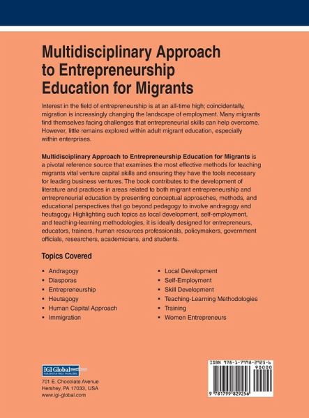 Interest in the field of entrepreneurship is at an all-time high; coincidentally, migration is increasingly changing the landscape of employment. Many migrants find themselves facing challenges that entrepreneurial skills can help overcome. However, little remains explored within adult migrant education, especially within enterprises. Multidisciplinary Approach to Entrepreneurship Education for Migrants is a pivotal reference source that examines the most effective methods for teaching migrants vital venture capital skills and ensuring they have the tools necessary for leading business ventures. The book contributes to the development of literature and practices in areas related to both migrant entrepreneurship and entrepreneurial education by presenting conceptual approaches, methods, and educational perspectives that go beyond pedagogy to involve andragogy and heutagogy. Highlighting such topics as local development, self-employment, and teaching-learning methodologies, it is ideally designed for entrepreneurs, educators, trainers, human resources professionals, policymakers, government officials, researchers, academicians, and students.