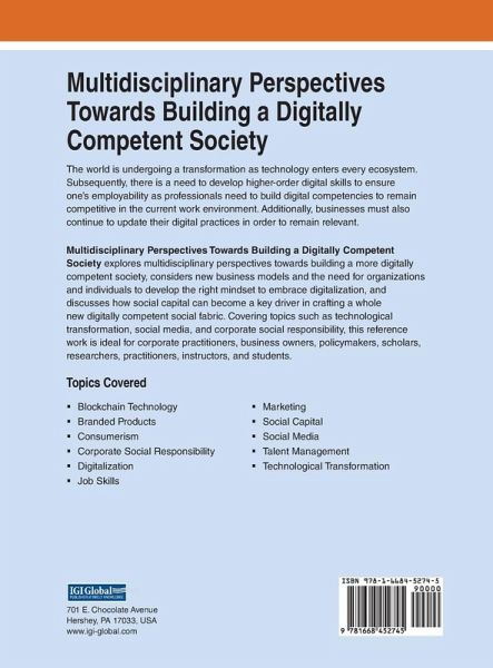 The world is undergoing a transformation as technology enters every ecosystem. Subsequently, there is a need to develop higher-order digital skills to ensure one's employability as professionals need to build digital competencies to remain competitive in the current work environment. Additionally, businesses must also continue to update their digital practices in order to remain relevant. Multidisciplinary Perspectives Towards Building a Digitally Competent Society explores multidisciplinary perspectives towards building a more digitally competent society, considers new business models and the need for organizations and individuals to develop the right mindset to embrace digitalization, and discusses how social capital can become a key driver in crafting a whole new digitally competent social fabric. Covering topics such as technological transformation, social media, and corporate social responsibility, this reference work is ideal for corporate practitioners, business owners, policymakers, scholars, researchers, practitioners, instructors, and students.