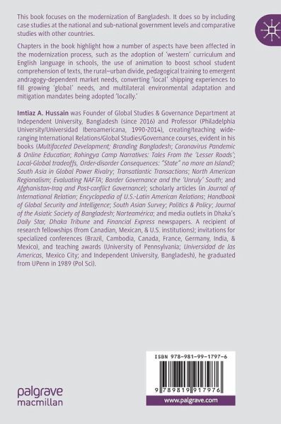 Chapter 1: "Multiple Modernities" & Bangladesh: Identity Search?.- Chapter 2: Comparing Secular & Religious Primary Education: Bangladesh's Marriage Of Convenience?.- Chapter 3: Evolving English Pedagogy & 'Second-Best' Outcomes: Bangladesh's Pre-University Experiences.- Chapter 4: Pixar In Classrooms.- Chapter 5: Unplugging The Matrix: Bridging The Urban-Rural Gap.- Chapter 6: Pedagogy Shiifting, Andragogy Knocking: From 'International' Classes To 'Global' Job-Market?.- Chapter 7: Standardizing Bangladesh's Maritime Education & Training: Global Challenges & The Job-Market.- Chapter 8: Controlling Climate, Facilitating Modernization: Comparing Bangladesh & Mexico.- Chapter 9: Questioning Questions: Can Questions Help Build Neuron Clusters?.- Chapter 10: 'Theory' Meets 'Turf' In Bangladesh: Melting-Pot, Mottled, Or Menacing 'Modernization'?.