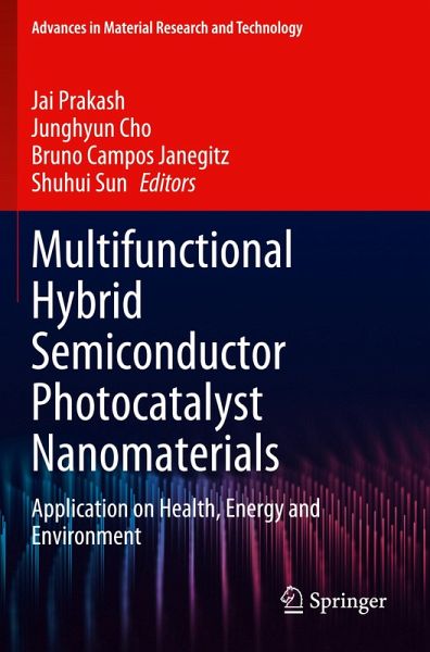 1. Introduction to semiconductor photocatalyst nanomaterials: Properties, modifications and multifunctional applications.- 2. Synthesis of Multifunctional Hybrid Semiconductor Nanomaterials.- 3. Application of Nanostructured Metal Oxides and Its Hybrids for Inactivation of Bacteria and Viruses.- 4. Advances in semiconductor photocatalyst towards the removal of aromatic volatile organic compounds in air.- 5. Hybrid semiconductor photocatalyst nanomaterials in CO2 reduction and storage applications.- 6. SiO2 based multifunctional hybrid semiconductor nanomaterials and their applications in energy, environment and health.- 7. The Future of Graphene Oxide-Based Nanomaterials and Their Potential Environmental Applications: A Contemporary View.- 8. Hybrid semiconductor photocatalyst nanomaterials for electrochemical sensing applications.- 9. Role of TiO2-based Photocatalysts in Waste Water Treatment.- 10. Hybrid photocatalyst nanomaterials insolar cell applications.- 11. Transition metal chalcogenides-based nanocomposite for the photocatalytic degradation of hazardous chemicals.- 12. 3D-printed electrochemical (bio)sensors.- 13. Plasmon- Based Metal-Oxides Nanostructures For Biomedical Applications.- 14. Recent advances in ZnO-based hybrid nanomaterials as photoelectrodes for photoelectrochemical water splitting.- 15. Semiconductor-based plasmonic nanohybrids: Synthesis, characterization, mechanistic understanding, and their multifunctional applications.- 16. Polymer-based hybrid composites for wastewater treatment.