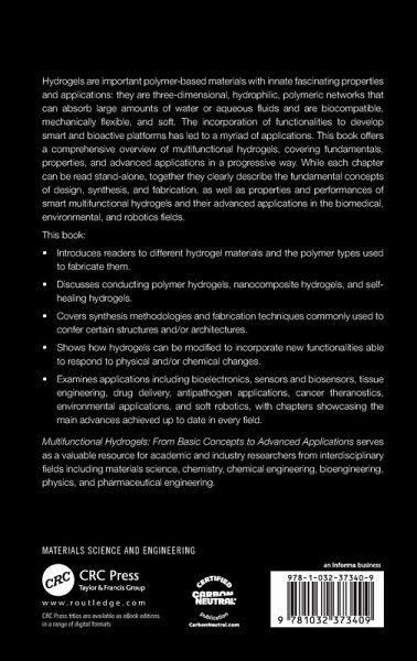 1. Multifunctional Hydrogels: An Introduction 2. Hydrogels Based on Natural and/or Synthetic Polymers 3. Nanocomposite Hydrogels 4. Synthesis of Hydrogels: Physical and Chemical Cross-Linking 5. Fabrication Techniques of Hydrogels 6. Hydrogel-Based Sensors with Advanced Properties 7. Chemical-Responsive Reversible Hydrogels 8. Hydrogels with Electrical Properties 9. Hydrogels with Magnetic Properties 10. Hydrogels with Thermal Responsiveness 11. Mechanical Properties of Multifunctional Hydrogels 12. Hydrogels for Bioelectronics 13. Hydrogels for Physical and (Bio)Chemical Sensors 14. Hydrogels for Biomedical Applications 15. Hydrogels for Drug Delivery 16. Hydrogels for Anti-Pathogen Applications 17. Hydrogels for Environmental Applications 18. Hydrogels for Wastewater Cleaning and Water Recovery 19. Hydrogels for Soft Robotics