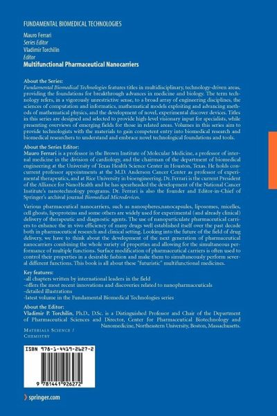 Multifunctional Pharmaceutical Nanocarriers intends to bring together the experts in the field of multifunctional nanopharmaceuticals to provide the reader with the cutting edge information, a critical overview of the field, and analysis of the current and future tendencies and developments to aid in the rapid developments in the field.