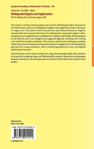 This volume contains research papers and surveys reflecting the topics discussed at the EMS Summer School on Multigraded Algebra and Applications held in Romania in August 2016. The school, which served as the 24th National School on Algebra, presented the main research directions of combinatorial commutative algebra with a strong focus on its applications in combinatorics, statistics, and biology. Recent progress in the field has led to new insights and suggested algebraic techniques for solving real-world data analysis problems. The summer school and resulting proceedings volume have raised numerous novel questions and encouraged a more interdisciplinary approach for young researchers when considering problems in pure and applied mathematical research.