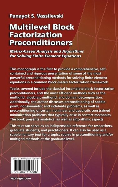 Topics covered include the classical incomplete block-factorization preconditioners and the most efficient methods such as the multigrid, algebraic multigrid, and domain decomposition. Additionally, the author discusses preconditioning of saddle-point, nonsymmetric and indefinite problems, as well as preconditioning of certain nonlinear and quadratic constrained minimization problems that typically arise in contact mechanics. The book presents analytical as well as algorithmic aspects.