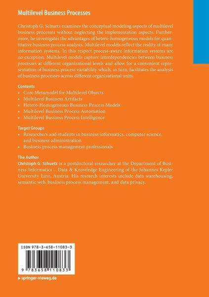 Christoph G. Schuetz examines the conceptual modeling aspects of multilevel business processes without neglecting the implementation aspects. Furthermore, he investigates the advantages of hetero-homogeneous models for quantitative business process analysis. Multilevel models reflect the reality of many information systems. In this respect process-aware information systems are no exception. Multilevel models capture interdependencies between business processes at different organizational levels and allow for a convenient representation of business process variability which, in turn, facilitates the analysis of business processes across different organizational units.