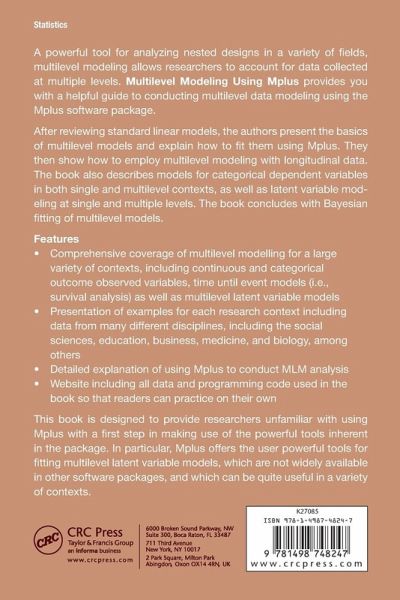 This book is designed primarily for upper level undergraduate and graduate level students taking a course in multilevel modelling and/or statistical modelling with a large multilevel modelling component. The focus is on presenting the theory and practice of major multilevel modelling techniques in a variety of contexts, using Mplus as the software tool, and demonstrating the various functions available for these analyses in Mplus, which is widely used by researchers in various fields, including most of the social sciences. In particular, Mplus offers users a wide array of tools for latent variable modelling, including for multilevel data.
