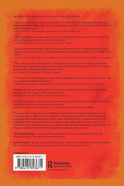 This very original, inspirational book globalises our understanding of languages in education and changes our understanding of bilingual and multilingual education from something mostly western to being truly transnational: it spotlights the small, celebrates African and Asian cases of multilingual classrooms and demonstrates that such education is universally successful.