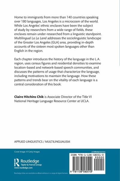 Home to immigrants from more than 140 countries speaking over 180 languages, Los Angeles is a microcosm of the world. While Los Angeles' ethnic enclaves have been the subject of study by researchers from a wide range of fields, these enclaves remain under-researched from a linguistic standpoint. Multilingual La La Land addresses the sociolinguistic landscape of the Greater Los Angeles (GLA) area, providing in-depth accounts of the sixteen most spoken languages other than English in the region. Each chapter introduces the history of the language in the L.A. region, uses census figures and residential densities to examine location-based and network-based speech communities, and discusses the patterns of usage that characterize the language, including motivations to maintain the language. How these patterns and trends bear on the vitality of each language is a central consideration of this book.