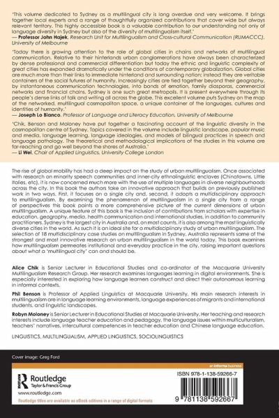The rise of global mobility has had a deep impact on the study of urban multilingualism. Once associated with research on minority speech communities and inner-city ethnolinguistic enclaves (Chinatowns, Little Italies, etc), it is now concerned much more with the use of multiple languages in diverse neighbourhoods across the city. In this book the authors take an innovative approach that builds on previously published work in two ways. First, it focuses on a single city and, second, it adopts a multidisciplinary approach to multilingualism. By examining the phenomenon of multilingualism in a single city from a range of perspectives this book paints a more comprehensive picture of the current dimensions of urban multilingualism. A unique feature of this book is the inclusion of contributions from scholars with expertise in education, geography, media, health communication and international studies, in addition to community practitioners. Sydney is the largest city in Australia and, on most counts, it is also among the most linguistically diverse cities in the world. As such it is an ideal site for a multidisciplinary study of urban multilingualism. The selection of 18 multidisciplinary case studies on multilingualism in Sydney, Australia represents some of the strongest and most innovative research on urban multilingualism in the world today. This book examines how multilingualism permeates institutional and everyday practice in the city, raising important questions about what a 'multilingual city' can and should be.
