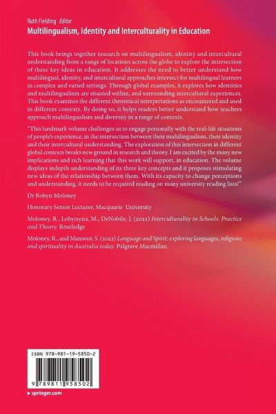 Chapter 1. Introduction - Multilingualism, Identity and Interculturality as Constructs in Education.- Chapter 2. Conceptualising the Multilingual Intercultural Identity Approach in Languages Education.- Chapter 3. "My languaging is ok, your languaging is ok!": Multilingual identity as the wellspring of intercultural development.- Chapter 4. The intersection of multilingualism and intercultural competence in the Norwegian foreignl language curriculum: teachers' perspectives.- Chapter 5. Trying harder than everyone else; examining how young former refugees reconstruct new identities that assist them to 'get ahead' in Australian education.- Chapter 6. Identity, investment and interculturality in adult multilingualism: between monolingual mindsets and diversity activism.- Chapter 7. Multiplying the identity factor. Harnessing the language resources of the language ecology for expressing Aboriginal and Torres Strait Islander identity.- Chapter 8. From Bilingual to Plurilingual Identity:How to Advance Language Learners' Plurilinguality and Pluriculturality.- Chapter 9. Diversity Matters: Harnessing the linguistic and cultural resources of multilingual children and families.- Chapter 10. Future Directions for Multilingualism, Identity and Intercultural Understanding in Education.