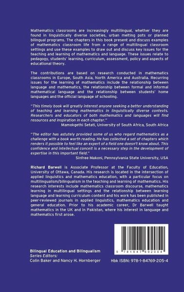 Learning and teaching mathematics in multilingual, bilingual or second language settings can be challenging. This book explores the issues that arise in multilingual mathematics classrooms in Europe, S.Asia, N.America and Australia. Chapter draw on research to offer new insights into the relationship between language, learning and mathematics.