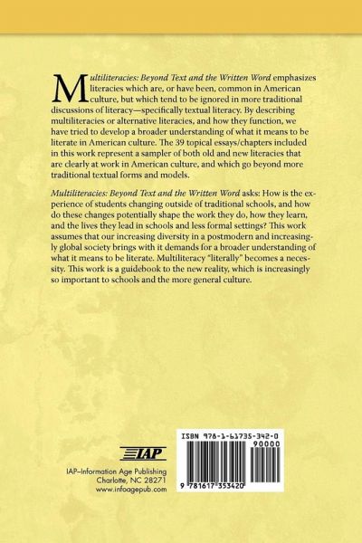 A volume in Landscapes of Education Series Editors: William H. Schubert, University of Illinois at Chicago & Ming Fang He, Georgia Southern University Multiliteracies: Beyond Text and the Written Word emphasizes literacies which are, or have been, common in American culture, but which tend to be ignored in more traditional discussions of literacy-specifically textual literacy. By describing multiliteracies or alternative literacies, and how they function, we have tried to develop a broader understanding of what it means to be literate in American culture. The 39 topical essays/chapters included in this work represent a sampler of both old and new literacies that are clearly at work in American culture, and which go beyond more traditional textual forms and models. Multiliteracies: Beyond Text and the Written Word asks: How is the experience of students changing outside of traditional schools, and how do these changes potentially shape the work they do, how they learn, and the lives they lead in schools and less formal settings? This work assumes that our increasing diversity in a postmodern and increasingly global society brings with it demands for a broader understanding of what it means to be literate. Multiliteracy "literally" becomes a necessity. This work is a guidebook to the new reality, which is increasingly so important to schools and the more general culture.