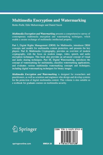 Multimedia Encryption and Watermarking presents a comprehensive survey of contemporary multimedia encryption and watermarking techniques, which enable a secure exchange of multimedia intellectual property.