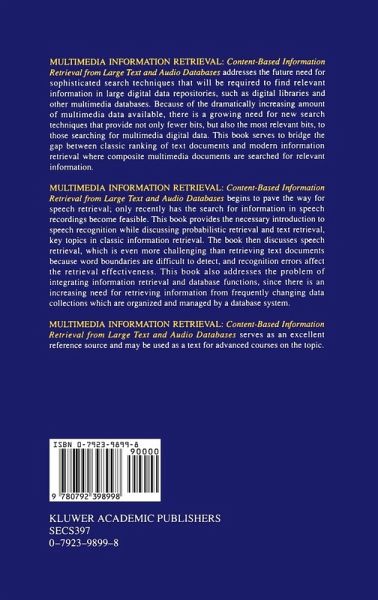 Multimedia Information Retrieval: Content-Based Information Retrieval from Large Text and Audio Databases addresses the future need for sophisticated search techniques that will be required to find relevant information in large digital data repositories, such as digital libraries and other multimedia databases. Because of the dramatically increasing amount of multimedia data available, there is a growing need for new search techniques that provide not only fewer bits, but also the most relevant bits, to those searching for multimedia digital data. This book serves to bridge the gap between classic ranking of text documents and modern information retrieval where composite multimedia documents are searched for relevant information.