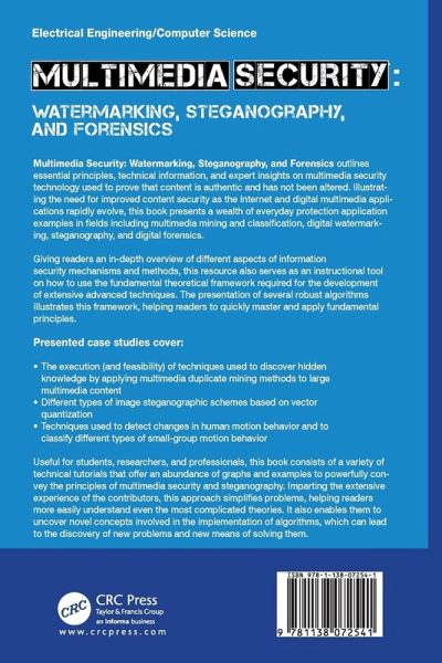 Multimedia Security: Watermarking, Steganography, and Forensics outlines essential principles, technical information, and expert insights on multimedia security technology used to prove that content is authentic and has not been altered. Illustrating the need for improved content security as the Internet and digital multimedia applications rapidly evolve, this book presents a wealth of everyday protection application examples in fields including multimedia mining and classification, digital watermarking, steganography, and digital forensics. Giving readers an in-depth overview of different aspects of information security mechanisms and methods, this resource also serves as an instructional tool on how to use the fundamental theoretical framework required for the development of extensive advanced techniques. The presentation of several robust algorithms illustrates this framework, helping readers to quickly master and apply fundamental principles. Presented case studies cover: The execution (and feasibility) of techniques used to discover hidden knowledge by applying multimedia duplicate mining methods to large multimedia content Different types of image steganographic schemes based on vector quantization Techniques used to detect changes in human motion behavior and to classify different types of small-group motion behavior Useful for students, researchers, and professionals, this book consists of a variety of technical tutorials that offer an abundance of graphs and examples to powerfully convey the principles of multimedia security and steganography. Imparting the extensive experience of the contributors, this approach simplifies problems, helping readers more easily understand even the most complicated theories. It also enables them to uncover novel concepts involved in the implementation of algorithms, which can lead to the discovery of new problems and new means of solving them.