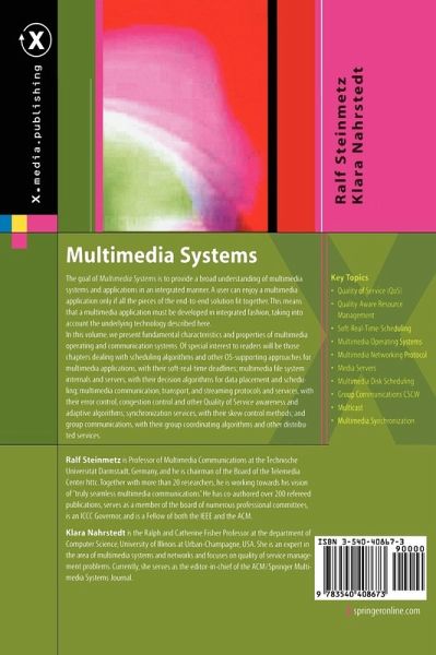 Multimedia Systems discusses the basic characteristics of multimedia operating systems, networking and communication, and multimedia middleware systems. The overall goal of the book is to provide a broad understanding of multimedia systems and applications in an integrated manner: a multimedia application and its user interface must be developed in an integrated fashion with underlying multimedia middleware, operating systems, networks, security, and multimedia devices.