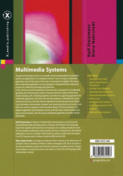 Multimedia Systems discusses the basic characteristics of multimedia operating systems, networking and communication, and multimedia middleware systems. The overall goal of the book is to provide a broad understanding of multimedia systems and applications in an integrated manner: a multimedia application and its user interface must be developed in an integrated fashion with underlying multimedia middleware, operating systems, networks, security, and multimedia devices.