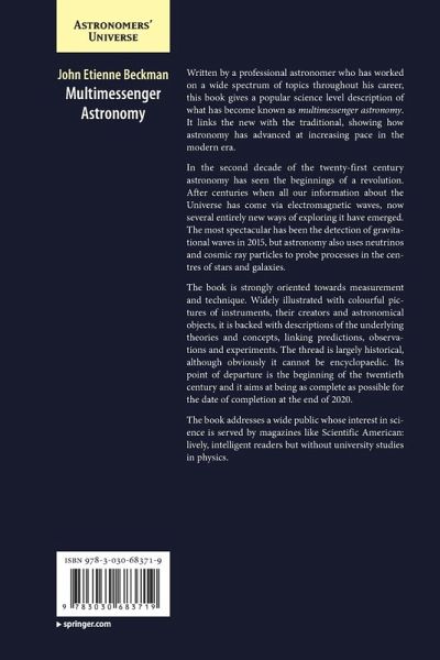 Written by a professional astronomer who has worked on a wide spectrum of topics throughout his career, this book gives a popular science level description of what has become known as multimessenger astronomy. It links the new with the traditional, showing how astronomy has advanced at increasing pace in the modern era.