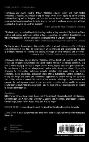 Foreword by Graeme Harper Acknowledgements Introduction: Creative Writing Beyond the Page, Kristina Wright and Sara K. Howe Chapter 1: !Rhymes: Experiments with Poetic Practices and Videogame Mechanics, Cameron Edmond Chapter 2: When Your Beginning Creative Writing Student is Already a Prolific Fic Author: Fan Fiction's Impact on Pedagogy, Sheryl Bundy Chapter 3: Podcasting and Online Literary Magazines: Playful Experimentation and Digital Skills, Sherezade García Rangel Chapter 4: Discovery, Play, and Motivation in the Multimodal Creative Writing Classroom, Ben Gunsberg Chapter 5: An Expanded Field: Exploring Form, Mode, and Material in Poetry Writing Workshop, Nikki Fragala Barnes Chapter 6: From Panel to Paragraph: Narratively Translating Graphic Novels, Matthew Macomber Chapter 7: A Symphony of Word, Image, and Sound: The Creative Potential of Digital Storytelling, Mary C. Leoson Chapter 8: Getting Creative with Data and Wikis: Redesigning the English Curricula, Tara Propper and Matt Kelly Cha
