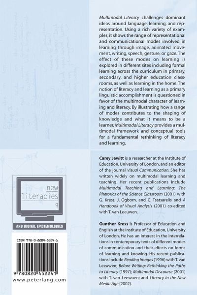 Multimodal Literacy challenges dominant ideas around language, learning, and representation. Using a rich variety of examples, it shows the range of representational and communicational modes involved in learning through image, animated movement, writing, speech, gesture, or gaze. The effect of these modes on learning is explored in different sites including formal learning across the curriculum in primary, secondary, and higher education classrooms, as well as learning in the home. The notion of literacy and learning as a primary linguistic accomplishment is questioned in favor of the multimodal character of learning and literacy. By illustrating how a range of modes contributes to the shaping of knowledge and what it means to be a learner, Multimodal Literacy provides a multimodal framework and conceptual tools for a fundamental rethinking of literacy and learning.