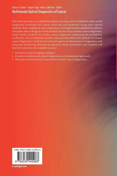 This book provides an in-depth description and discussion of different multi-modal diagnostic techniques for cancer detection and treatment using exact optical methods, their comparison, and combination. Coverage includes detailed descriptions of modern state of design for novel methods of optical non-invasive cancer diagnostics; multi-modal methods for earlier cancer diagnostic enhancing the probability of effective cancer treatment; modern clinical trials with novel methods of clinical cancer diagnostics; medical and technical aspects of clinical cancer diagnostics, and long-term monitoring. Biomedical engineers, cancer researchers, and scientists will find the book to be an invaluable resource. Introduces optical imaging strategies;Focuses on multimodal optical diagnostics as a fundamental approach;Discusses novel methods of optical non-invasive cancer diagnostics.