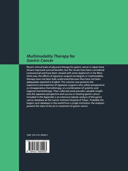 Recent clinical trials of adjuvant therapy for gastric cancer in Japan have shown improved survival benefits, but the results have been considered controversial and have been viewed with some skepticism in the West. Until now, the efforts of Japanese surgical oncologists in multimodality therapy have not been fully understood because they have not been adequately reported in English. This volume now presents the experience and expertise of Japanese surgeons who utilize preoperative or intraoperative chemotherapy, or a combination of systemic and regional chemotherapy. Their collected work provides valuable insight in the Japanese perspective and success in treating gastric cancer. Included in the appendix is an extensive tabular analysis of the gastric cancer database at the Cancer Institute Hospital of Tokyo. Probably the largest such database in the world from a single institution, the analyses present the state of the art in treatment of gastric cancer.