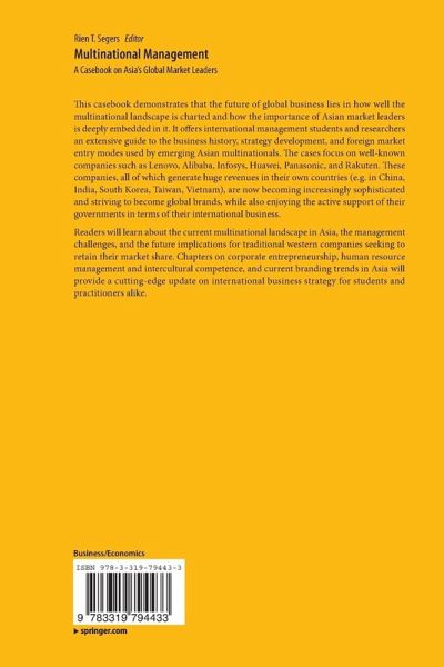 This casebook demonstrates that the future of global business lies in how well the multinational landscape is charted and how the importance of Asian market leaders is deeply embedded in it. It offers international management students and researchers an extensive guide to the business history, strategy development, and foreign market entry modes used by emerging Asian multinationals. The cases focus on well-known companies such as Lenovo, Alibaba, Infosys, Huawei, Panasonic, and Rakuten. These companies, all of which generate huge revenues in their own countries (e.g. in China, India, South Korea, Taiwan, Vietnam), are now becoming increasingly sophisticated and striving to become global brands, while also enjoying the active support of their governments in terms of their international business.
