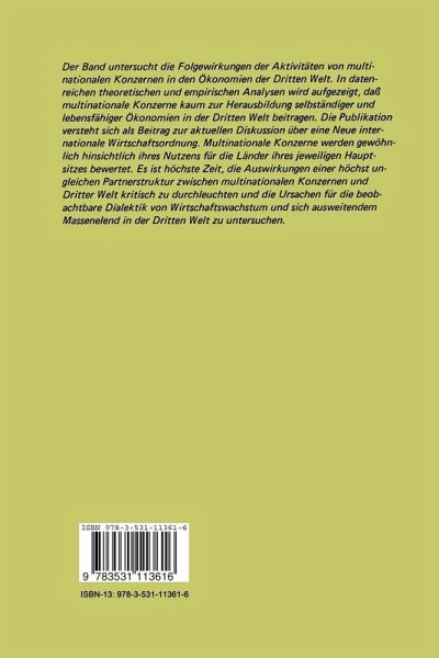 I. Dimensionen von MNK-Aktivitäten in der Dritten Welt.- Typen, Gründe und regionale Verteilung der Auslandsdirektinvestitionen in Entwicklungsländern.- Multinationale Konzerne der Bundesrepublik Deutschland und unterentwickelte Länder.- II. Sozioökonomische Folgen von MNK-Aktivitäten in der Dritten Welt.- Multinationale Konzerne und Dritte Welt.- Multinationale Konzerne, nationaler Markt und Unterentwicklung.- III. Neuere Aktionsfelder von MNK.- Die neue Penetration der Landwirtschaften der unterentwickelten Länder durch die Industrienationen und ihre multinationalen Konzerne.- Multinationale Konzerne und Rüstung.- IV. Handlungsspielräume peripherer Staatsapparate gegen MNK?.- Multinationale Konzerne und politische Systeme in Entwick-lungsländern. Die Lateinamerikanisierung der Klassenstrukturen in der Dritten Welt.- Neun Thesen zum Verhältnis von Staatsapparat und multinationalen Konzernen in der Dritten Welt.- V. Kontrollchancen und Gegenstrategien.- Konzeptionen und Konsequenzen administrativer Maßnahmen zur Überwachung und Kontrolle multinationaler Konzerne.- Neue Formen der Rohstoffvermarktung - neue internationale/Arbeisteilung?.- Anhang: Sozialwissenschaft und MNK.- Rainer Tetzlaff.- Anmerkungen zur Funktion wissenschaftlicher Gutachten bei einem Hearing vor dem Bundestagsausschuß für wirtschaftliche Zusammenarbeit am 11. und 12. November 1974 in Bonn.- Gerd Junne und Frieder Schlupp.- Gegeninformation als Gegen-Macht?.- Bibliographie.- Thematischer Index zur Bibliographie.- Verzeichnis der Autoren.