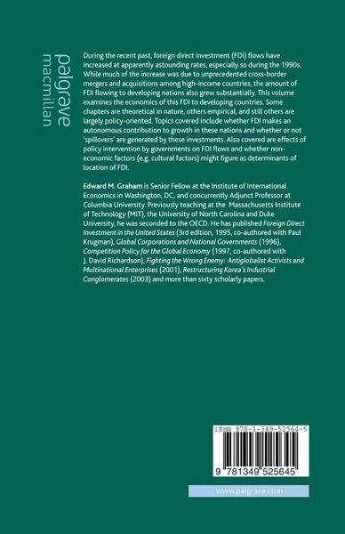 During the past twenty or so years, foreign direct investment (FDI) flows have increased at rates approaching the astounding, especially so during the 1990s. While much of the increase was due to unprecedented cross-border mergers and acquisitions among high-income countries, the amount of FDI flowing to developing nations also grew substantially. This volume examines the economics of this FDI to developing countries. Some chapters are theoretical in nature, others empirical, and still others are largely policy-oriented. Topics covered include whether FDI makes an autonomous contribution to growth in these nations and whether or not 'spillovers' are generated by this investments. Also covered are effects of policy intervention by governments on FDI flows and whether non-economic factors (e.g. cultural factors) might figure as determinants of location of FDI.
