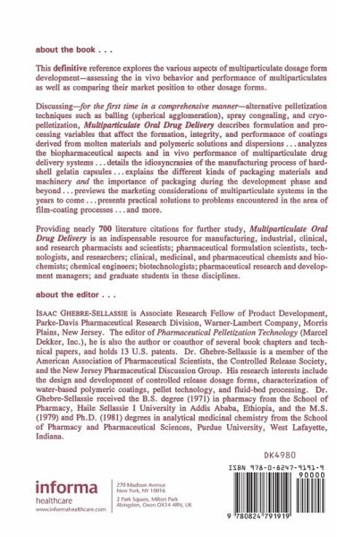 This definitive reference explores the various aspects of multiparticulate dosage form development-assessing the in vivo behavior and performance of multiparticulates as well as comparing their market position to other dosage forms. It discusses alternative pelletization techniques such as balling (spherical agglomeration), spray congealing, and cryopelletization. The book also covers formulation and processing variables that affect the formation, integrity, and performance of coatings derived from molten materials and polymeric solutions and dispersions and details the idiosyncrasies of the manufacturing process of hard-shell gelatin capsules.