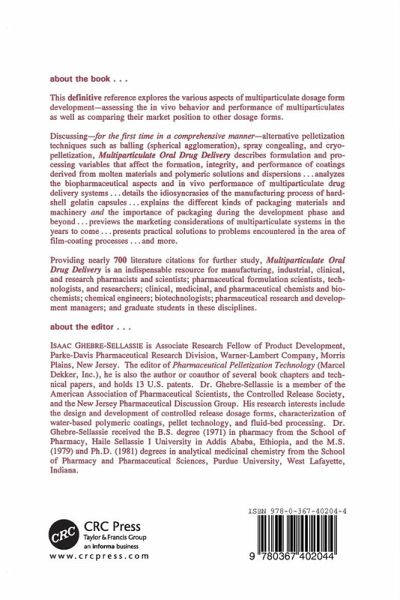 This definitive reference explores the various aspects of multiparticulate dosage form development-assessing the in vivo behavior and performance of multiparticulates as well as comparing their market position to other dosage forms. Discussing-for the first time in a comprehensive manner-alternative pelletization techniques such as balling (spherical agglomeration), spray congealing, and cryopelletization, Multiparticulate Oral Drug Delivery describes formulation and processing variables that affect the formation, integrity, and performance of coatings derived from molten materials and polymeric solutions and dispersions analyzes the biopharmaceutical aspects and in vivo performance of multiparticulate drug delivery systems details the idiosyncrasies of the manufacturing process of hard-shell gelatin capsules explains the different kinds of packaging materials and machinery and the importance of packaging during the development phase and beyond previews the marketing considerations of multiparticulate systems in the years to come presents practical solutions to problems encountered in the area of film-coating processes and more!