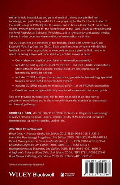 Written to help haematology and general medical trainees evaluate their own knowledge, and particularly useful for those preparing for the Part 1 examination of the Royal College of Pathologists. This exam-centered book will also be of use to core medical trainees preparing for the examinations of the Royal College of Physicians and the Royal Australasian College of Physicians and to haematology and general medicine trainees in other countries where methods of examination are similar.