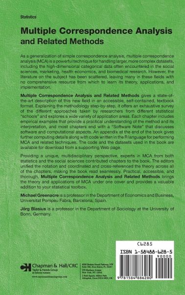 Providing a unique, multidisciplinary perspective, experts in MCA from both statistics and the social sciences contributed chapters to the book. The editors unified the notation and coordinated and cross-referenced the theory across all of the chapters, making the book read seamlessly. Practical, accessible, and thorough, Multiple Correspondence Analysis and Related Methods brings the theory and applications of MCA under one cover and provides a valuable addition to your statistical toolbox.