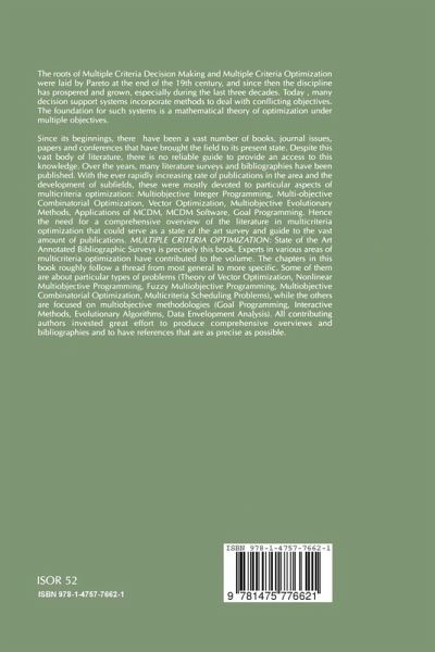 From the reviews: "Each chapter deals with a particular aspect of multicriteria optimization and is written by specialists in their field. ... Each chapter of this volume is understandable without reading a previous part of this book. ... A lot of special and actual aspects are presented in detail ... . this book is a comprehensive overview of MCDM problems and corresponding literature, especially of contributions since 1990. This reference book on multicriteria optimization can be highly recommended to students and researchers ... ." (Andreas Kleine, OR-News, March, 2005)