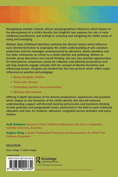 Recognising multiple cultural, ethical and geographical influences which impact on the development of a child's identity, this insightful text explores the role of early childhood practitioners and settings in nurturing and navigating the child's sense of being and belonging. ¿ Multiple Early Childhood Identies confronts the diverse factors which influence early identity-formation to emphasise the child's understanding of self, outsiders' projections and the messages communicated by educators, family members and the wider community as critical to a child's identity and wellbeing. Written to provoke group discussion and extend thinking, this text also provides opportunities for international comparison, points for reflection and editorial provocations and will help students engage critically with the concept of identity-formation and influencing factors. Chapters are divided into four key sections which reflect major influences on practice and pedagogy: ¿ Being alongside children Those who educate Embedding families and communities Working with systems ¿ Offering in-depth discussion of the diverse perspectives, experiences and practices which impact on the formation of the child's identity, this text will enhance understanding, support self-directed learning and provoke and transform thinking at both graduate and postgraduate levels, particularly in the field of early childhood education and care, for students, educators, integrated service providers and policy makers.