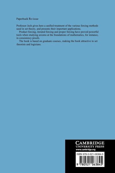 In this 1987 text Professor Jech gives a unified treatment of the various forcing methods used in set theory, and presents their important applications.