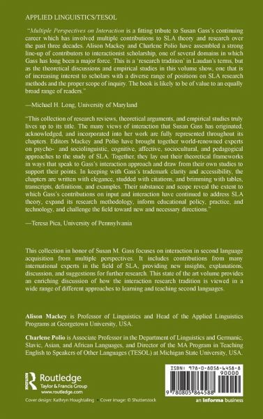 This volume in honor of Susan M. Gass focuses on interaction in second language acquisition from multiple perspectives. International experts in the field of SLA contribute insights and explanations on the interaction approach's compatibility with other theoretical approaches, key empirical studies, interaction in specific contexts, and future directions. Readers will find an enriching discussion of how the interaction research tradition is viewed in a wide range of different appraoches to learning and teaching second languages.