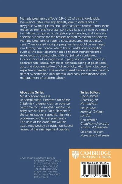 Multiple pregnancy affects 0.9-3.1% of births worldwide. Prevalence rates vary significantly due to differences in dizygotic twinning rates and use of assisted reproduction. Both maternal and fetal/neonatal complications are more common in multiple compared to singleton pregnancies, and there are specific problems for the fetuses related to monochorionicity. Multiple pregnancies require specialised and individualised care. Complicated multiple pregnancies should be managed in a tertiary care centre where there is additional expertise, such as the laser ablation needed to treat monochorionic monozygotic pregnancies with conjoined circulations. Cornerstones of management in pregnancy are the need for accurate fetal measurement to optimise dating of gestational age, and documentation of chorionicity. High-level ultrasound expertise is needed. The mothers need frequent assessment to detect hypertension and anemia, and early identification and management of preterm labour.