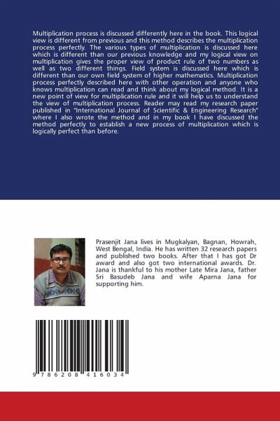 Multiplication process is discussed differently here in the book. This logical view is different from previous and this method describes the multiplication process perfectly. The various types of multiplication is discussed here which is different than our previous knowledge and my logical view on multiplication gives the proper view of product rule of two numbers as well as two different things. Field system is discussed here which is different than our own field system of higher mathematics. Multiplication process perfectly described here with other operation and anyone who knows multiplication can read and think about my logical method. It is a new point of view for multiplication rule and it will help us to understand the view of multiplication process. Reader may read my research paper published in "International Journal of Scientific & Engineering Research" where I also wrote the method and in my book I have discussed the method perfectly to establish a new process of multiplication which is logically perfect than before.