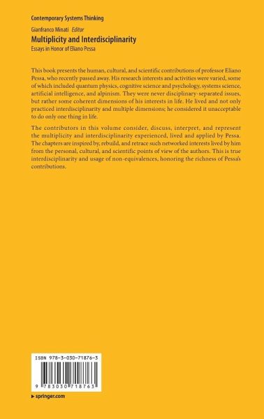 This book presents the human, cultural, and scientific contributions of professor Eliano Pessa, who recently passed away. His research interests and activities were varied, some of which included quantum physics, cognitive science and psychology, systems science, artificial intelligence, and alpinism. They were never disciplinary-separated issues, but rather some coherent dimensions of his interests in life. He lived and not only practiced interdisciplinarity and multiple dimensions; he considered it unacceptable to do only one thing in life.