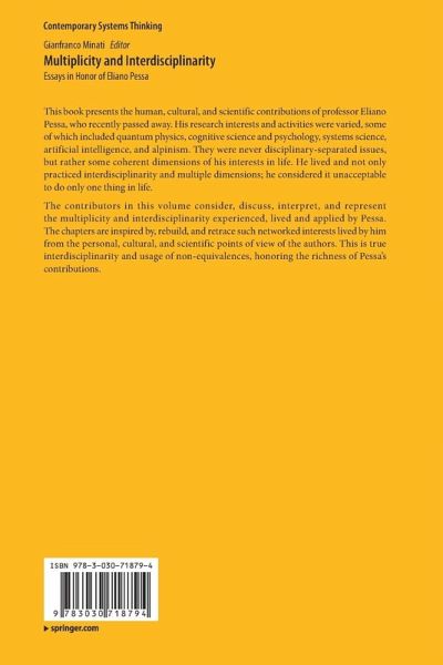This book presents the human, cultural, and scientific contributions of professor Eliano Pessa, who recently passed away. His research interests and activities were varied, some of which included quantum physics, cognitive science and psychology, systems science, artificial intelligence, and alpinism. They were never disciplinary-separated issues, but rather some coherent dimensions of his interests in life. He lived and not only practiced interdisciplinarity and multiple dimensions; he considered it unacceptable to do only one thing in life.