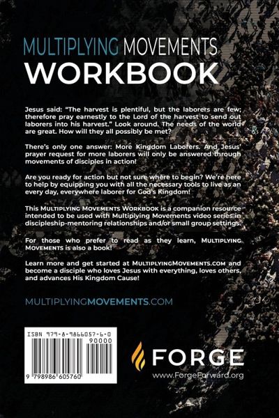 Jesus said, "The harvest is plentiful, but the laborers are few; therefore pray earnestly to the Lord of the harvest to send out laborers into his harvest." Look around. The needs of the world are great. How will they all possibly be met? The only way the great needs of the world can be met is through more Kingdom laborers. And Jesus' prayer request for more laborers will only be answered through movements of disciples in action! Are you ready for action but not sure where to begin? We're here to help by equipping you with all the necessary tools to lives as an every day, everywhere laborer for God's Kingdom. This Multiplying Movements Workbook is a companion resource intended to be used with the Multiplying Movements video series in discipleship-mentoring relationships and/or small group settings. Learn more and get started at MultiplyingMovements.com and become a disciple in action who loves Jesus with everything, loves others, and advances His Kingdom cause! For more discipleship and evangelism resources, check out ForgeForward.org, where we help everyday followers of Jesus answer His prayer for More Kingdom Laborers!