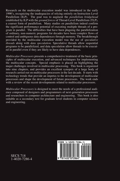 Multiscalar Processors presents a comprehensive treatment of the basic principles of Multiscalar execution, and advanced techniques for implementing the Multiscalar concepts. Special emphasis is placed on highlighting the major challenges involved in Multiscalar processing. This book is organized into nine chapters, and provides an excellent synopsis of a large body of research carried out on multiscalar processors in the last decade. It starts with technology trends that provide an impetus to the development of multiscalar processors and shape the development of future processors. The work ends with a review of the recent developments related to multiscalar processors.