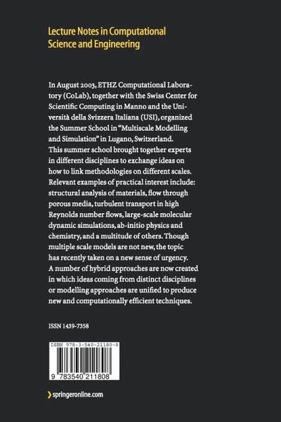 In August 2003, ETHZ Computational Laboratory (CoLab), together with the Swiss Center for Scientific Computing in Manno and the Università della Svizzera Italiana (USI), organized the Summer School in "Multiscale Modelling and Simulation" in Lugano, Switzerland. This summer school brought together experts in different disciplines to exchange ideas on how to link methodologies on different scales. Relevant examples of practical interest include: structural analysis of materials, flow through porous media, turbulent transport in high Reynolds number flows, large-scale molecular dynamic simulations, ab-initio physics and chemistry, and a multitude of others. Though multiple scale models are not new, the topic has recently taken on a new sense of urgency. A number of hybrid approaches are now created in which ideas coming from distinct disciplines or modelling approaches are unified to produce new and computationally efficient techniques.